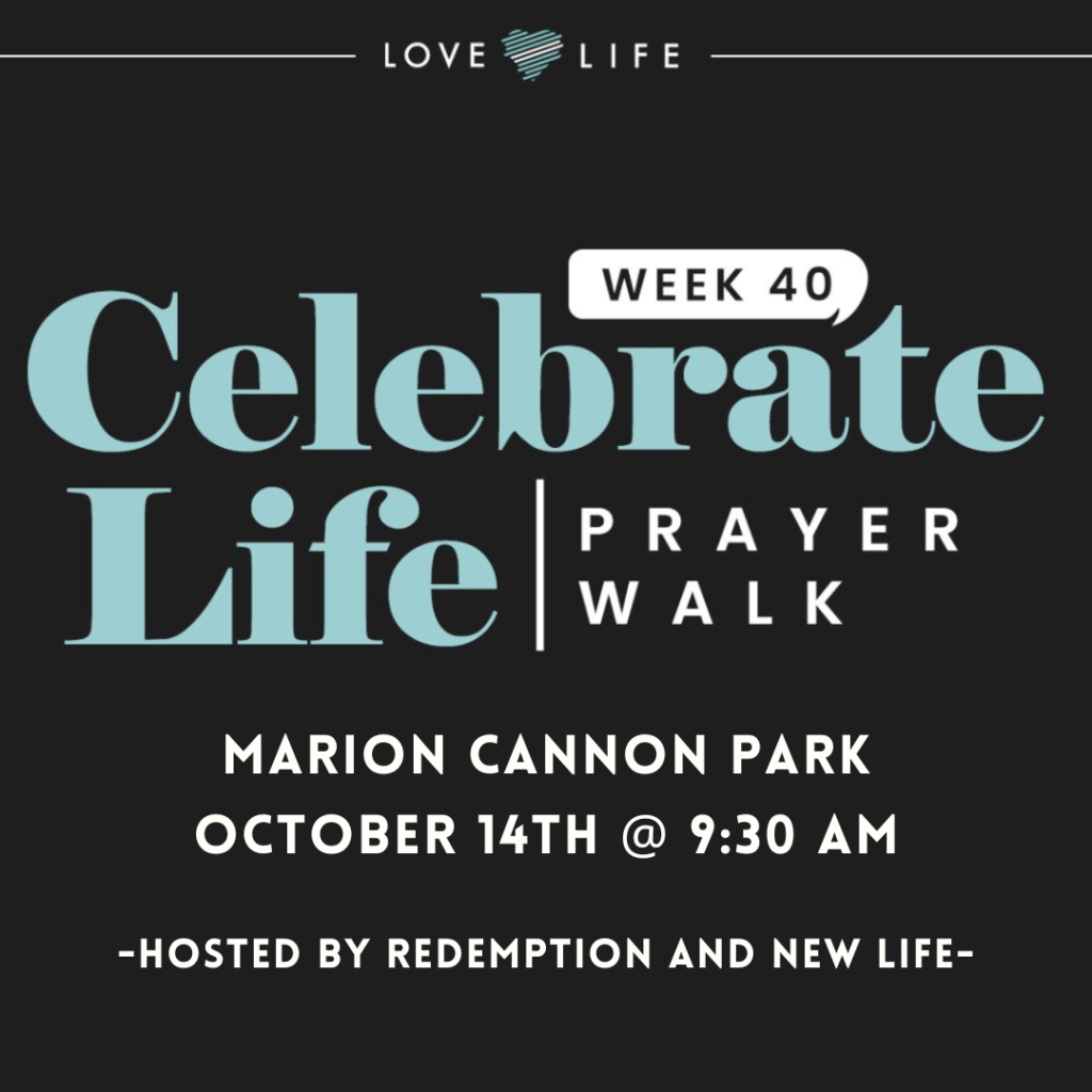 Join Redemption and New Life on a pro-life prayer walk this Saturday! These two churches have partnered with Love Life for prayer, worship and testimony. They will meet at Marion Cannon Park at 9:30 am. The walk will end with prayer outside Planned Parenthood.