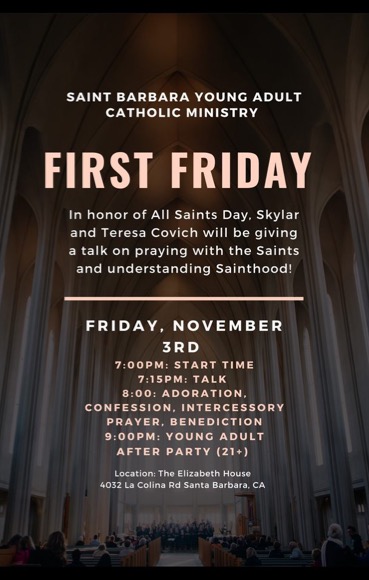 Join St. Barbara YAM on November 3rd for an evening of wisdom, adoration and after-party!