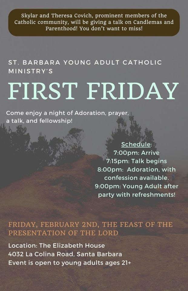 Visit the Elizabeth House for a talk, adoration, confession and partying on February 2nd at 7pm!