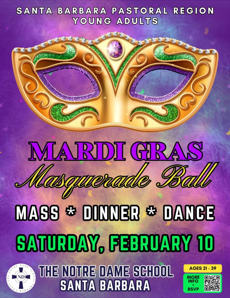 Come join us for the Mardi Gras Masquerade Ball on Feburary 10th for a delicious dinner, games and dancing to DJ MacLaren!