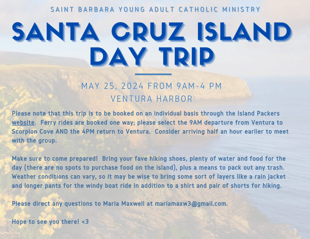 Explore Santa Cruz Island with Saint Barbara YAM on May 25th! Click here to book your ticket!