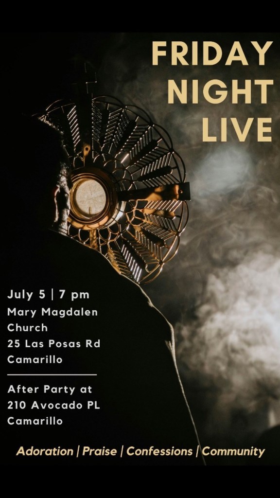 Friday Night Live is back! Join us for Eucharistic adoration, worship and after-party on July 5th!