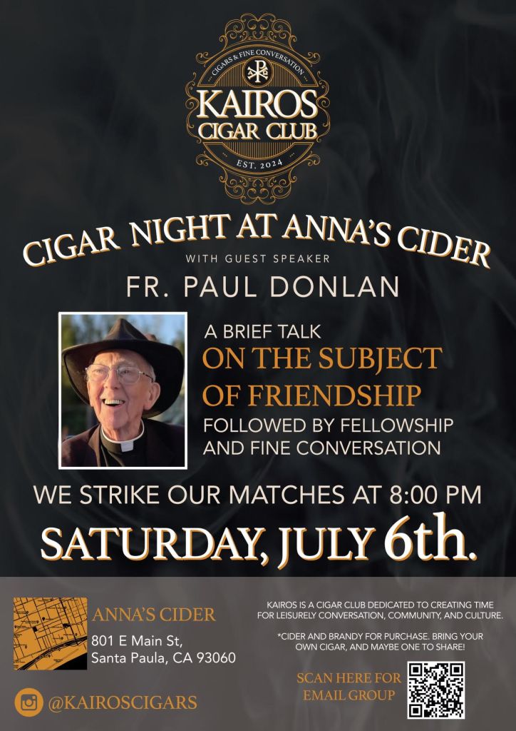 Join Kairos for a talk by Fr. Paul Donlan on July 6th! Men and women welcome!