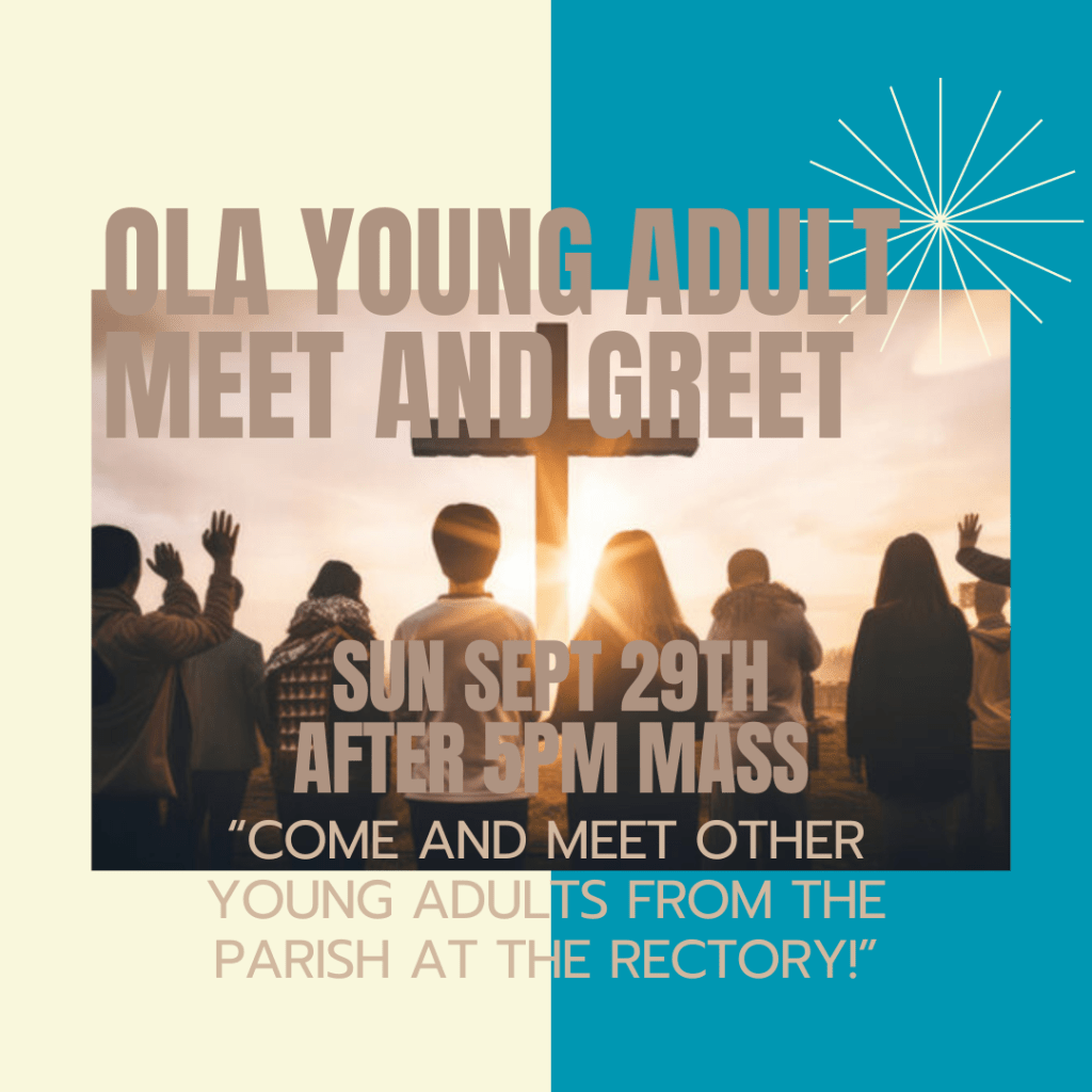 Our Lady of the Assumption is hosting a Young Adult Meet and Greet on Sept 29th! If you’re a young adult looking to expand your community, head to the rectory after the 5pm mass and meet someone new!