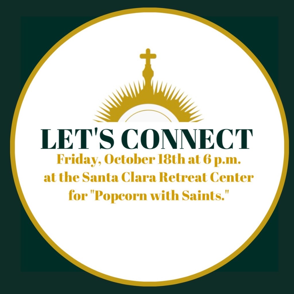 Join Connecting Catholics for “Popcorn with Saints” on October 18th! They will be watching a Faith based movie to learn about our faith/Saints from 6pm to 9pm. Pizza and popcorn provided. Please bring your favorite dessert or Halloween treat to share!