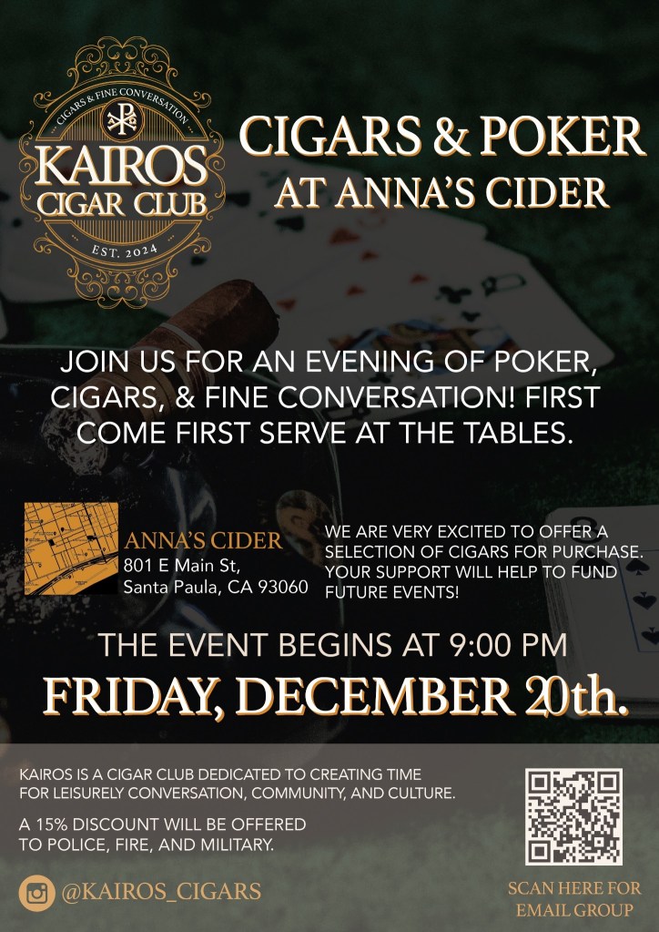 Join Kairos for Cigars & Poker on December 20th! More info on their
