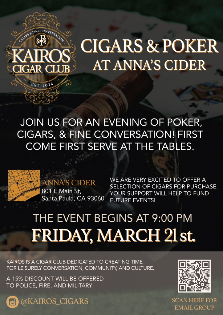 Join Kairos for Cigars & Poker on March 21st! More info on their