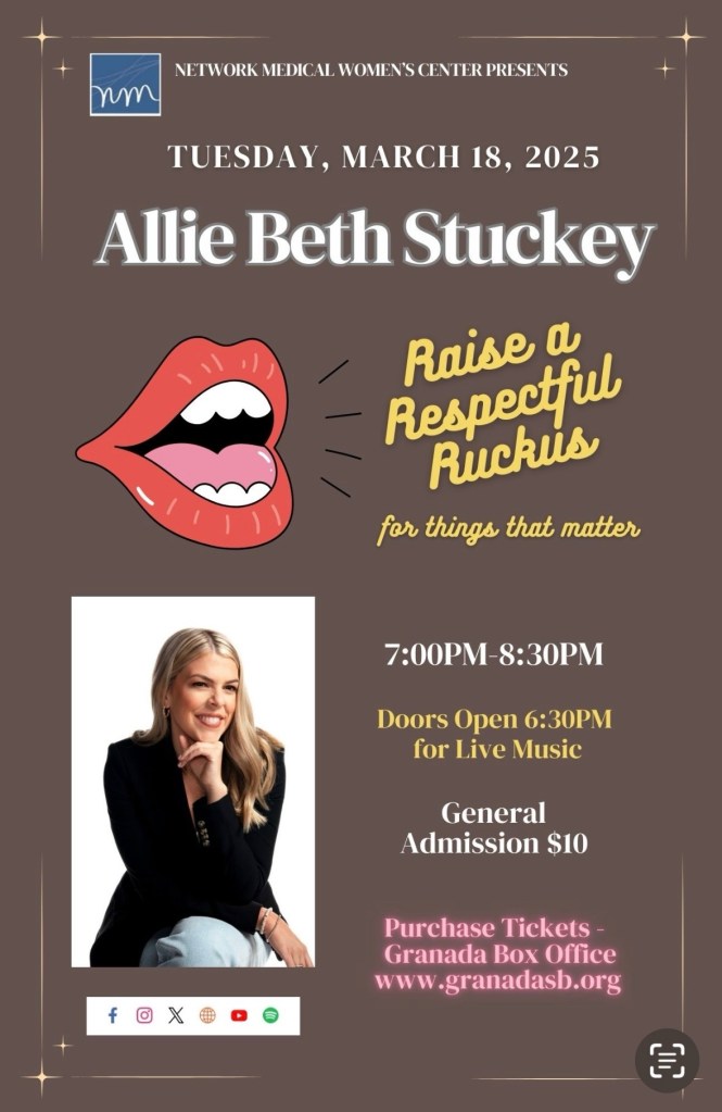 Network Medical Women’s Center, a pregnancy center local to Santa Barbara, presents “Raise a Respectful Ruckus for Things That Matter” by Allie Beth Stuckey. Allie is a podcast host, author, commentator, and speaker who’s passionate about helping women build their worldview upon the truth of God’s word.