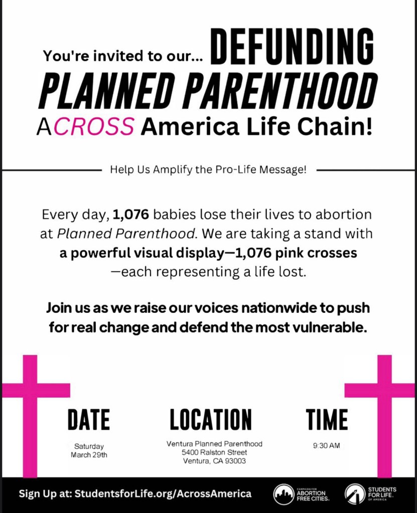 Join Students for Life for their “Defunding Planned Parenthood Across America Life Chain” event on March 29th! Register on their website.