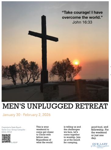 Join Our Lady of Assumption for their “Men’s Unplugged Retreat”! Located at Carpinteria State Beach from Friday night to Sunday afternoon.